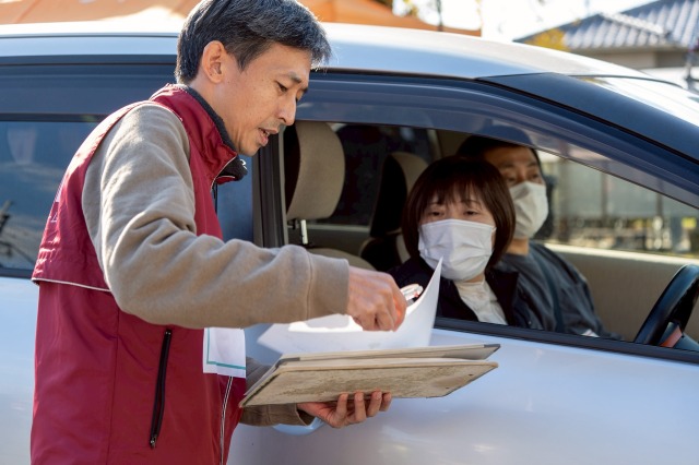 ⑰福祉的支援の必要な「福祉車中泊」マークを渡す